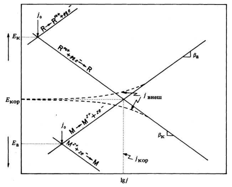 Принципиальной особенностью коррозии в растворах электролитов, как и других электрохимических процессов, является зависимость скорости процесса от потенциала металла. Полученную зависимость описывают поляризационные диаграммы.